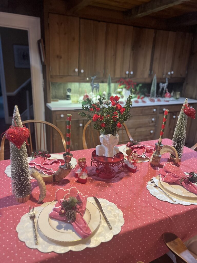 I for one have just decorated my kitchen for a girlfriend gathering called “Galentine’s” Day which takes place now the 13th of February. First mentioned on the TV show “Parks and Recreation,” it is a way to express gratitude and love for your friends. Great way to let people know that you love them – especially those who may not have a partner in their lives – but are grateful to have great friends.