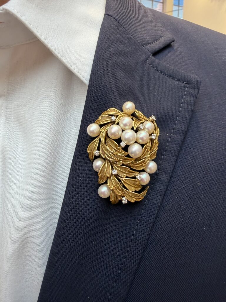 At a recent visit to Tiffany’s, I noticed one of the salesmen wearing a pin laced with pearls. It added both style and wit—which is, after all, the point of getting dressed.