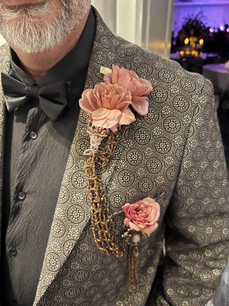 Floral Jeweled Pins and Flowers Having a Boutonniere Moment