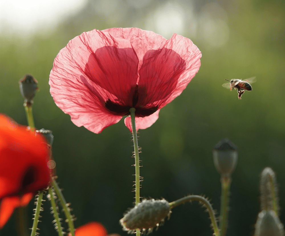 Protecting bees via “bee hotels,” pans of water, the reduction of lawn, and creating other intentional habitat helps provide homes to over 300 species of native bees.